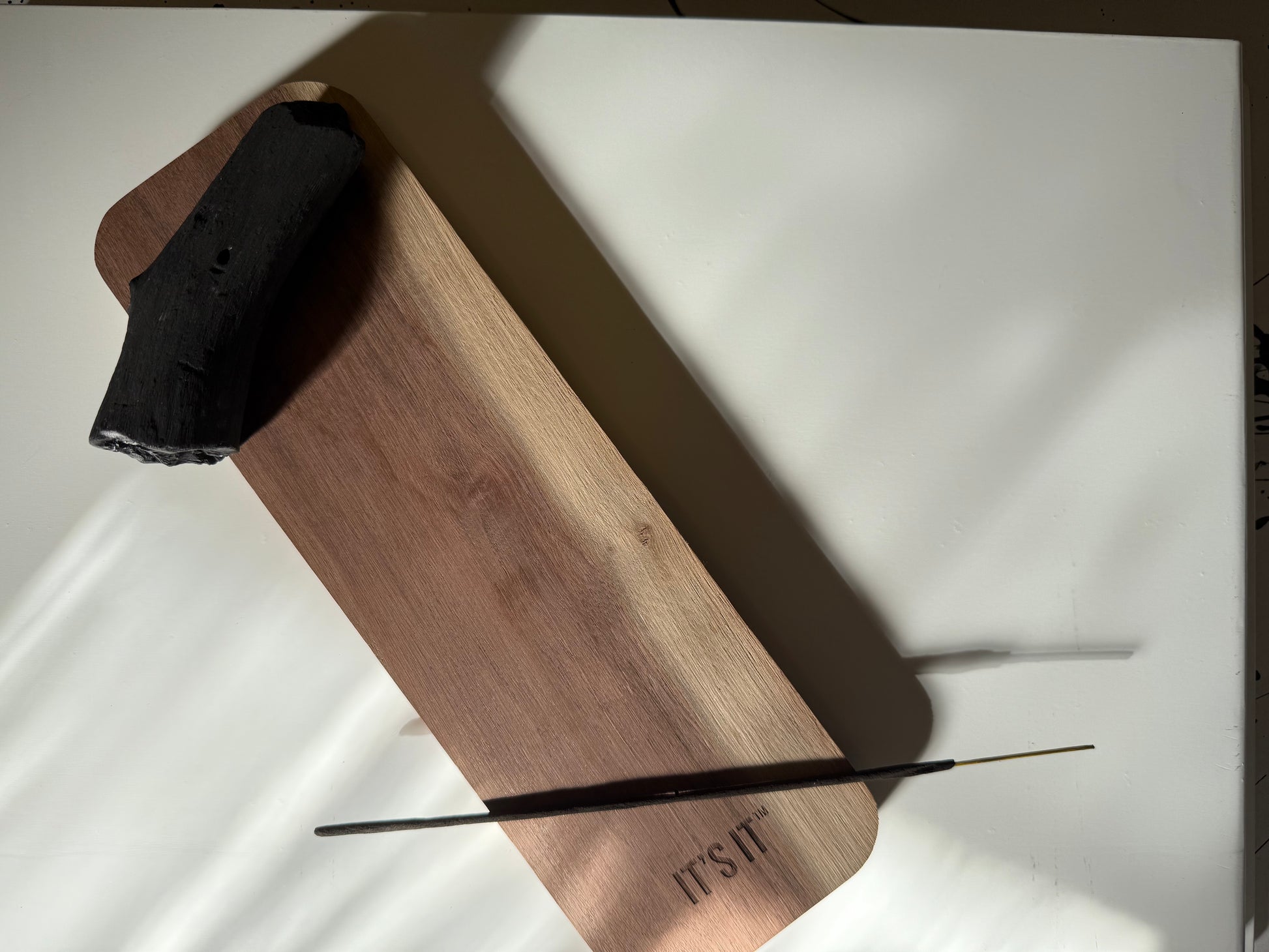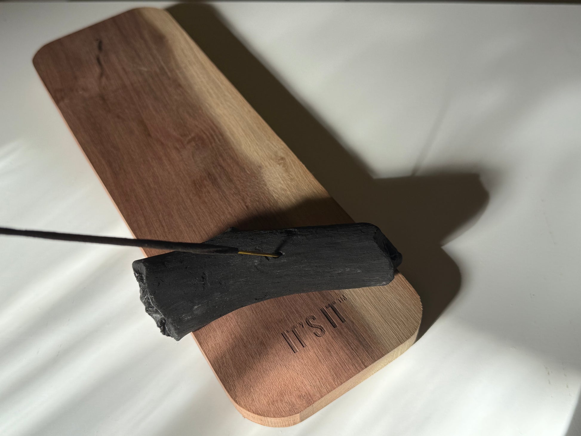 3. Place the incense stick in your Charred Wood Incense Holder. Silence notifications. Strike a match.